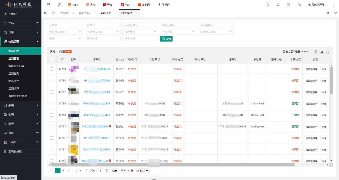 用戶可根據國內物流單號及國際物流單號,查詢相關物流信息,并反饋至系統平臺,如下圖所示: