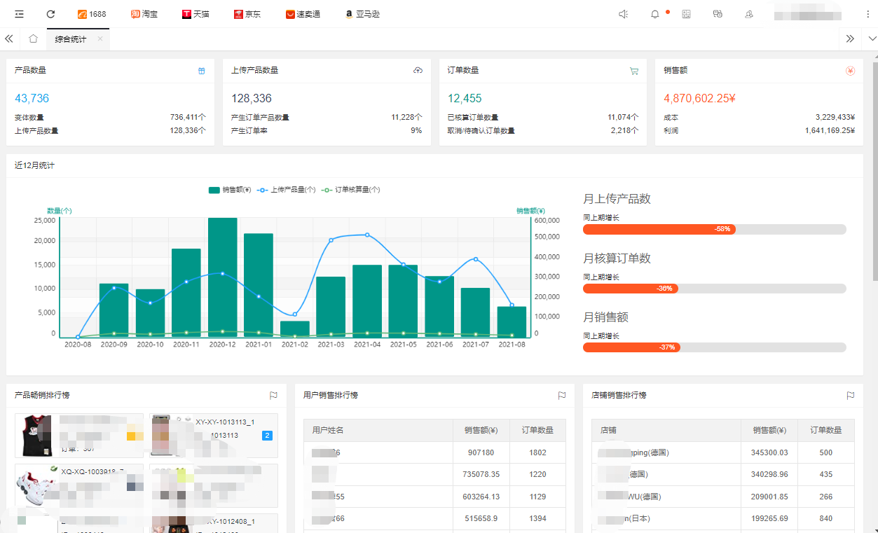 訂單統計、銷售額統計、訂單趨勢分析、暢銷品排行榜等